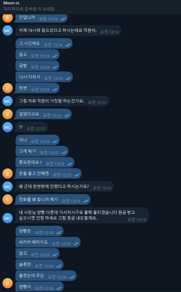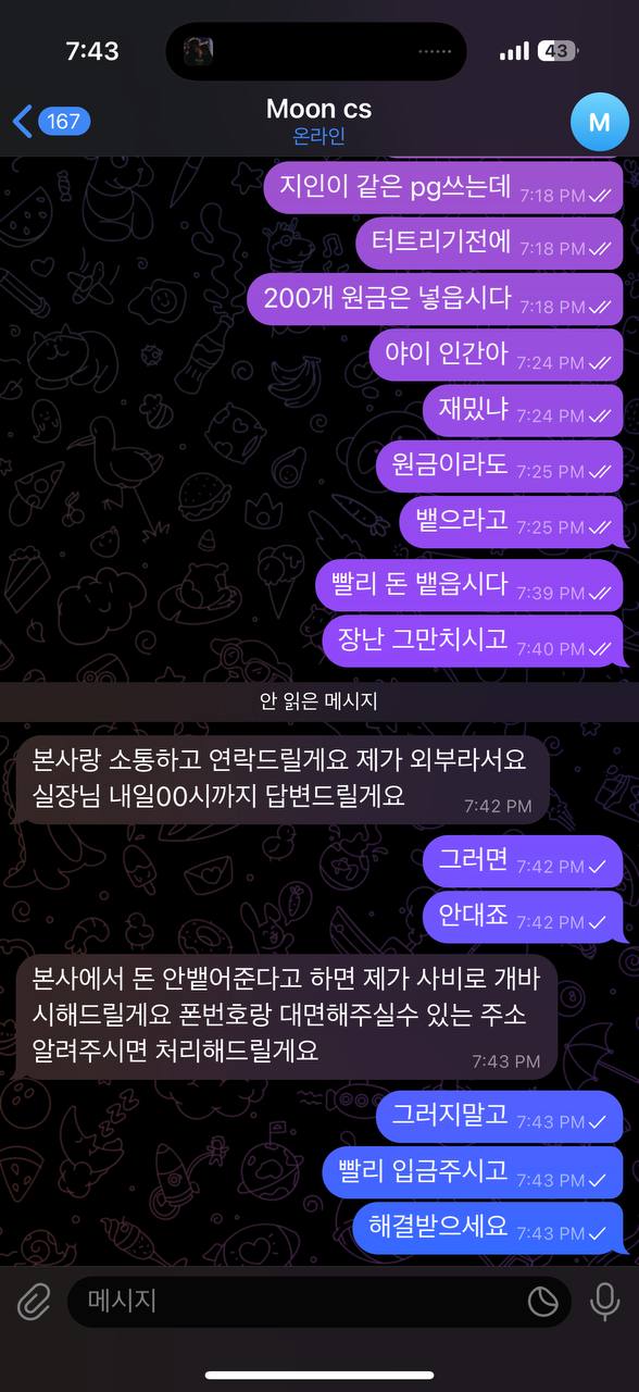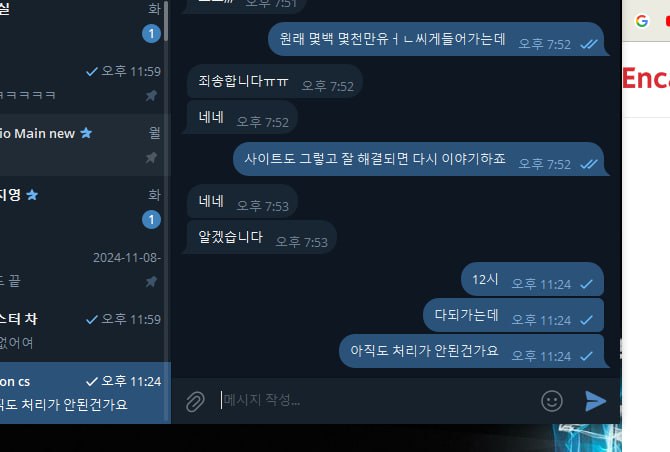 상담 요청 텔레그램도 연락마저 끊겼습니다. 이런 입먹 사이트 운영자들, 정말 답이 없습니다.