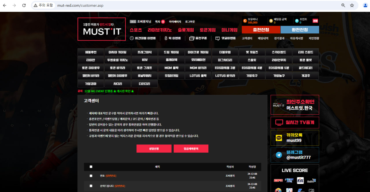 정말 억울합니다. 가입 후 몇 번 이용하면서 아무 문제 없이 잘 사용했는데, 이번엔 입금을 하고 들어가 보니 포인트 회수와 베팅 제제를 당했습니다. 고객센터에 문의하니 번호를 남기라고 해서 기다렸습니다.