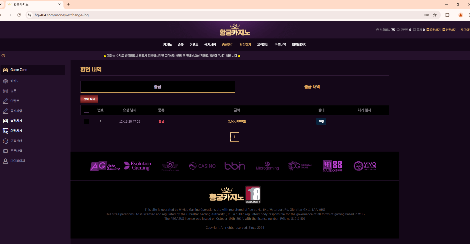 안녕하세요, 텔레그램 모카홍보방에서 황궁카지노라는 곳이 홍보 중이라 슬롯을 좋아하는 마음에 150을 충전하고 게임을 즐겼습니다. 운 좋게 266만 원까지 올렸는데, 갑자기 작업 배팅이라는 억지 이유를 대며 먹튀해버리더군요.