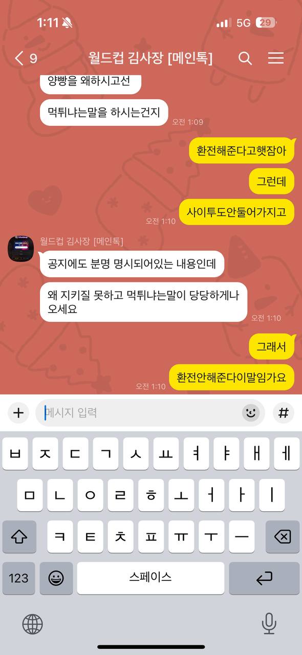 환전 신청만 하면 양방이다라며 공지를 들먹이고 협박을 하고, 결국 카카오톡 차단까지 시킵니다. 몇 년간 문제없이 이용하다가 갑자기 이런 일이 벌어지니 너무 황당합니다.