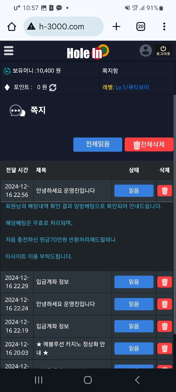 홀인 양방 핑계로 강제 원금처리