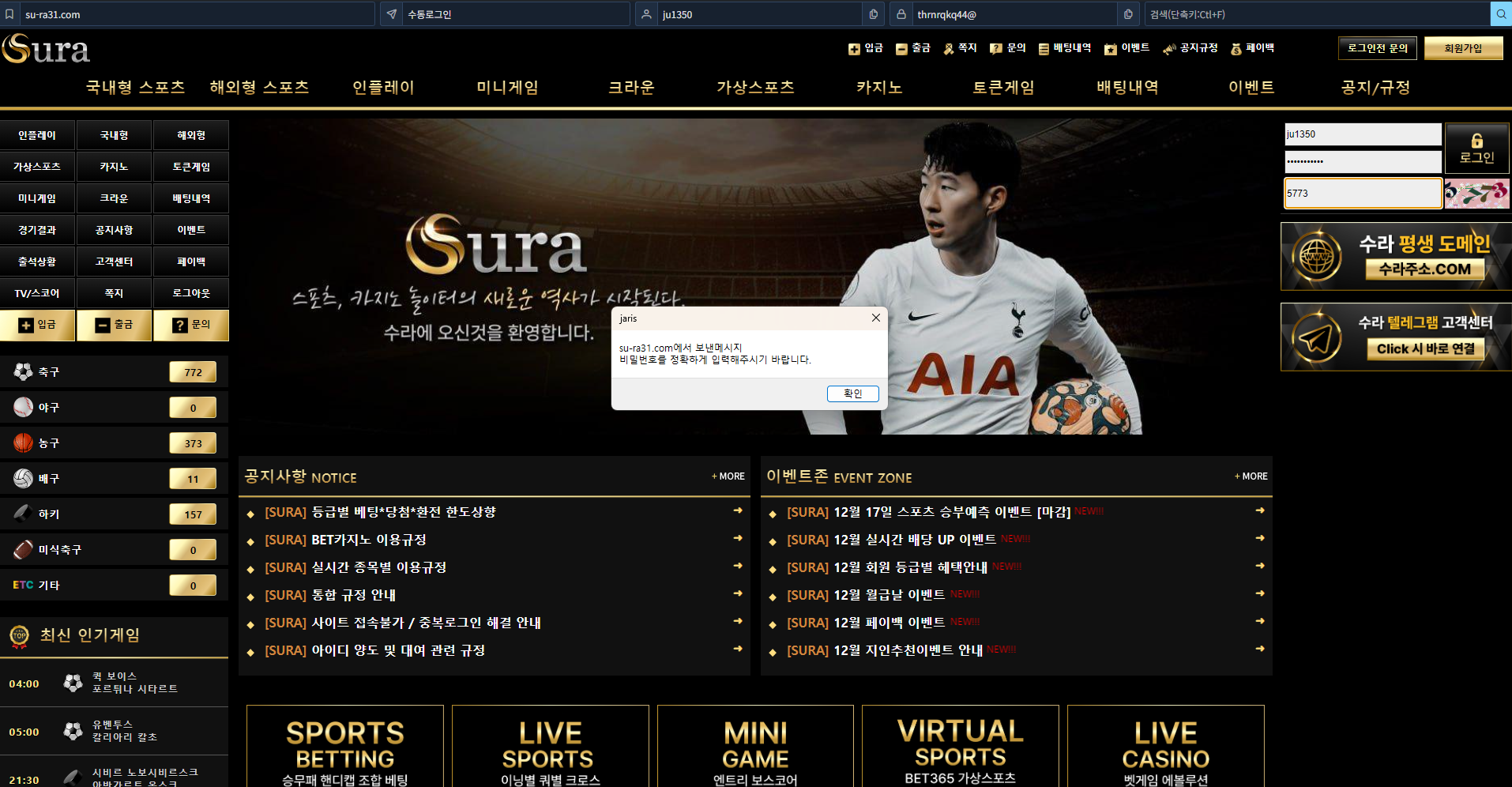 수라 스포츠 3폴더 당첨금 원금처리