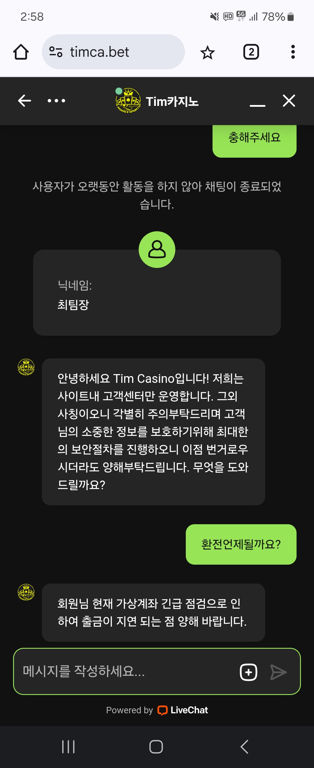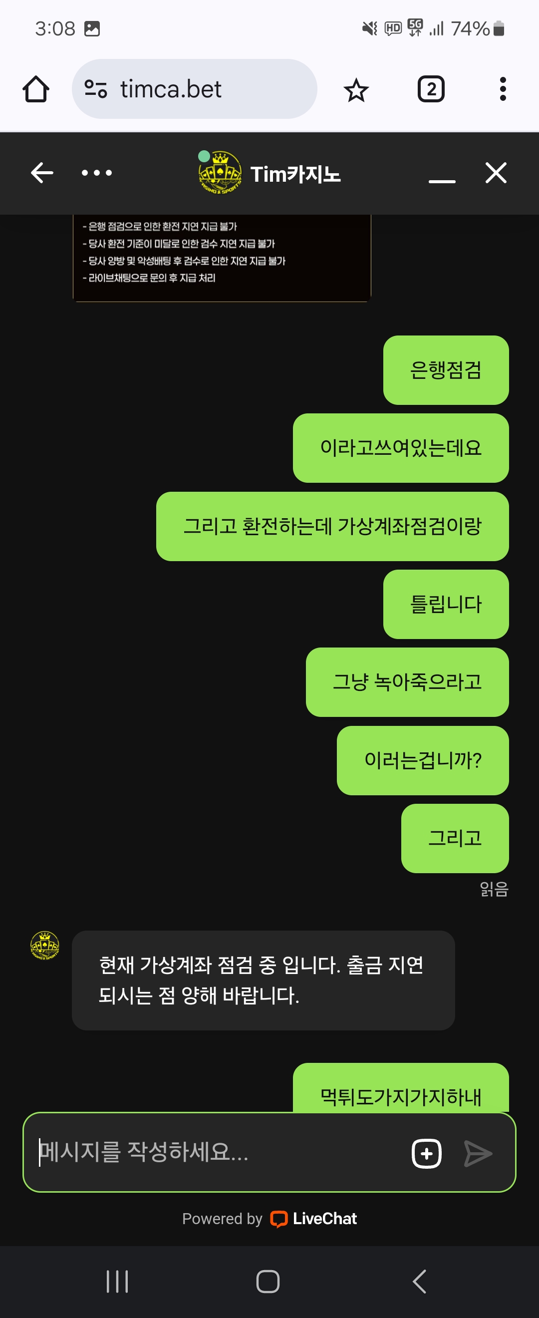가상계좌 점검 핑계를 대며 환전을 거부하는 전형적인 먹튀 사이트입니다.