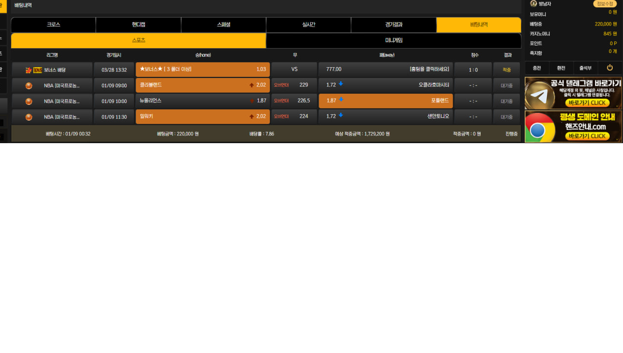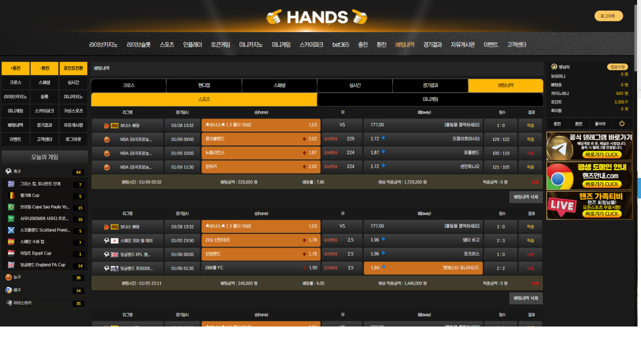 핸즈 배팅내역까지 조작하는 최악의 먹튀 사이트