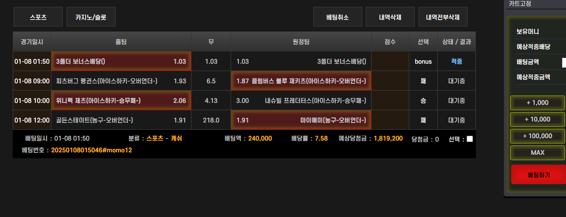배팅내역도 날마다 삭제되고, 저장해 둔 내역 아니었으면 증거도 못 남길 뻔했네요.