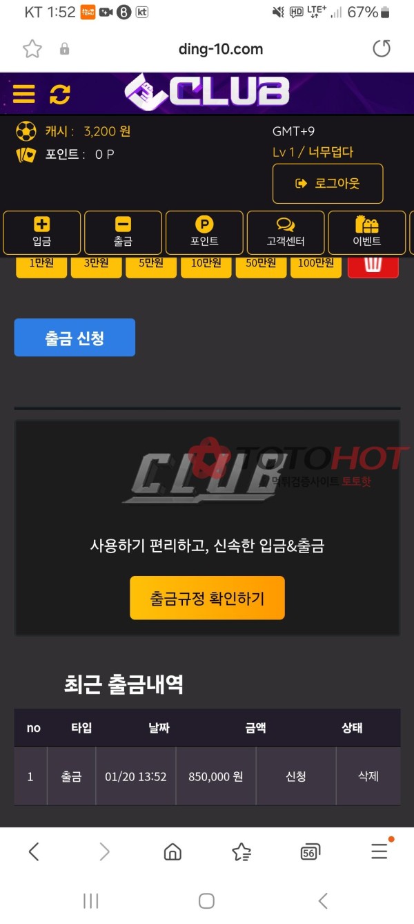 클럽 듣보잡 먹튀 사이트 주의 온카랜드 쪽지보내기 메일보내기 자기소개 아이디로 검색 전체게시물 쪽지보내기 메일보내기 자기소개 아이디로 검색 전체게시물 2025.01.22 23:21조회수843댓글수0추천188목록 사이트명 클럽 사이트주소 http://ding-10.com 피해금액 85만원 피해내용 - 유저 제보 내용 -홍보에 속아 10+6 첫환전 이벤트를 이용하며 7번이나 충전했습니다. 오늘 드디어 적중했는데, 그 순간 사이트에서 차단당하고 먹튀를 당했습니다.이런 듣보잡 사이트가 운영되는 게 참 어이가 없습니다. 증거사진 188추천 목록 댓글 0 등록된 댓글이 없습니다.