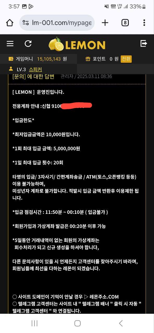 레몬 배너 광고로 장사하며 먹튀, 억지로 양방으로 몰아가고 협박까지