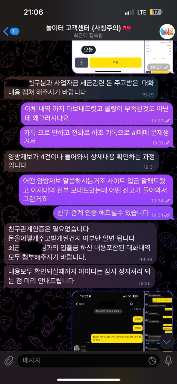 환전 내주기 싫으니까 이체내역 보내라고 하더니, 그걸 가지고 트집잡고 있네요. 도박하는 사람이 당연히 포인트 많이 받으려고 돈 딸라고 하는 건데, 여러 사이트를 쓰다 보니 내역 찍힌거가지고 치사하게 나오는 새끼들입니다. 진짜 더럽고 치사한 놈들입니다.
