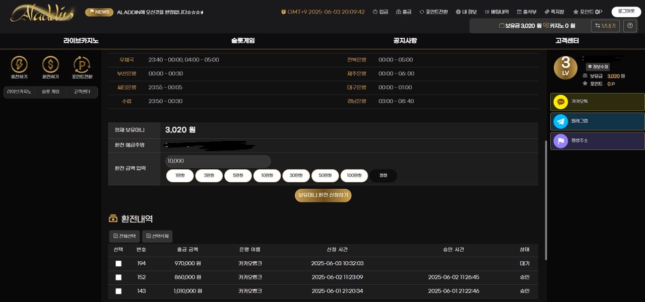 여기저기 배너도 달려있고 홍보도 많이 해서 믿고 이용했습니다. 처음엔 별 문제 없이 진행됐지만, 좀따고 환전 신청하자 갑자기 계좌 인증이 필요하다는 핑계를 대며 시간을 끌더군요.