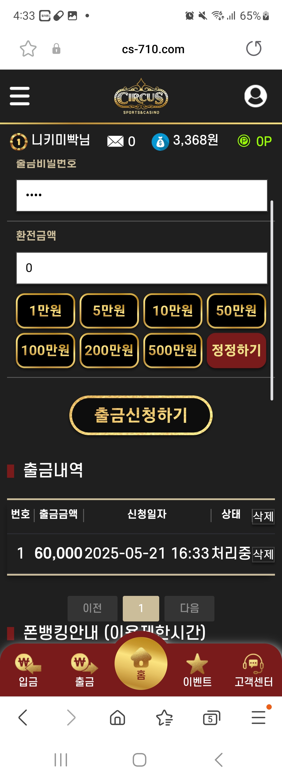 6만원에 이렇게 허덕이는 사이트는 또 처음보네요 이용 중지 바랍니다