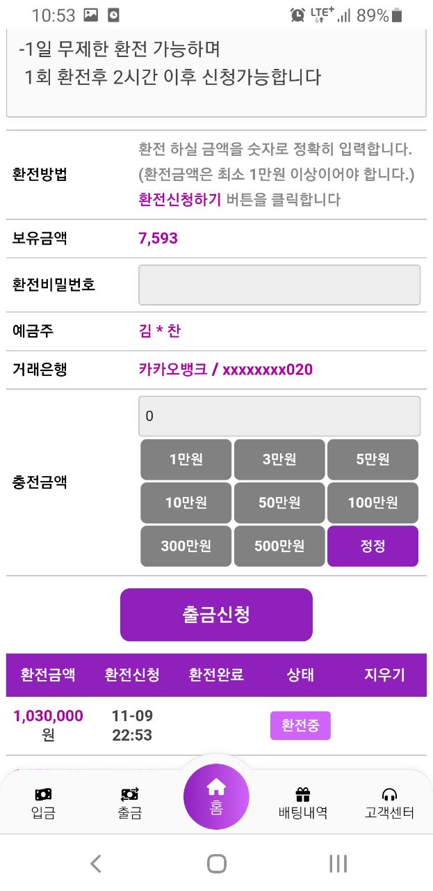 이 사이트는 진짜 최악입니다. 1년 동안 이용하면서 손해만 보다가, 최근에 몇 번 당첨되니 103만 원 환전 신청하자마자 먹튀하고 계정 차단을 해버렸습니다. 계속 같은 장만 이용하면서, 환전 요청하자마자 차단하는 완전 사기꾼들입니다. 절대 사용하지 마세요.