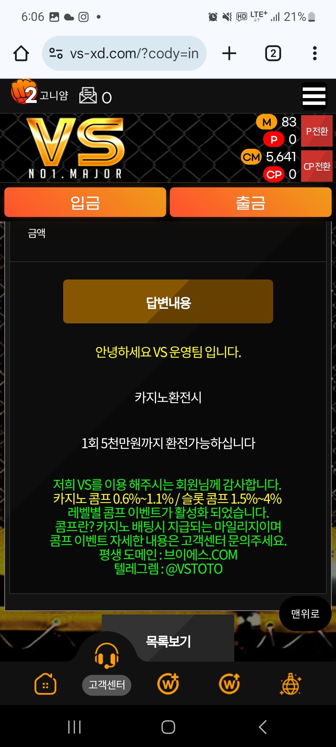 샤오미 시절부터 시작해 지금의 VS까지 5년 넘게 이용해온 사이트입니다. 그동안 몇억 잃다가 처음으로 4천만원 이상을 따게 되었는데, 환전 신청을 넣자마자 계정이 차단되었습니다. 다른 유저분들께 경고하려고 커뮤니티에 먹튀 정보를 올렸더니, 거기서도 곧바로 차단 및 탈퇴 조치를 당했습니다.